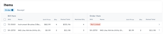 - Item Not Linked: The bill item was unable to be associated with an order item.