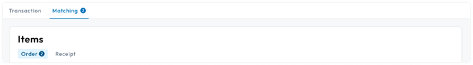 When viewing a bill detail page, all exceptions will appear on the Matching Tab. If the bill has items with exceptions, a badge appears next to the matching tab with the number of items that have exceptions. It will also appear next to the order tab in the items table. Receipt matching does not throw exceptions.