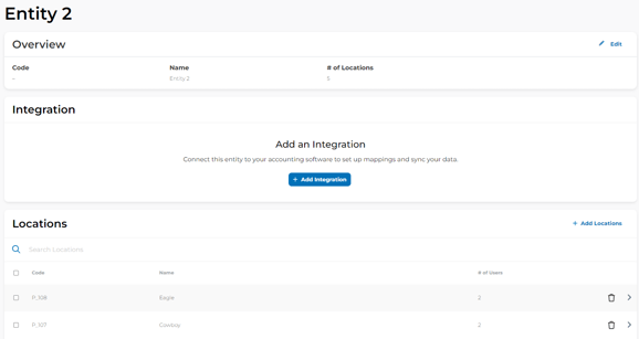 - In the Entity detail page, navigate to the Locations section and select the trash can icon from the location you wish to remove.