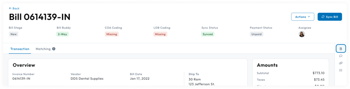 - Make sure you are under the Transaction tab of the bill page.