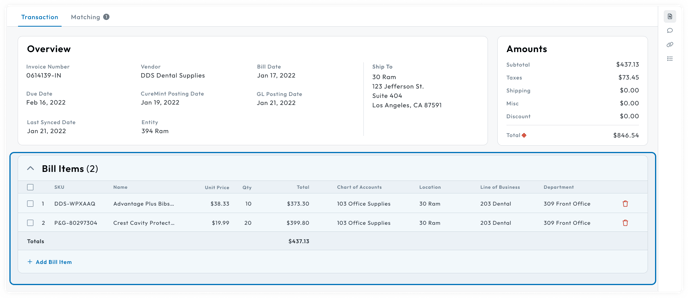 - Go to the Bill Items table and find the bill item.