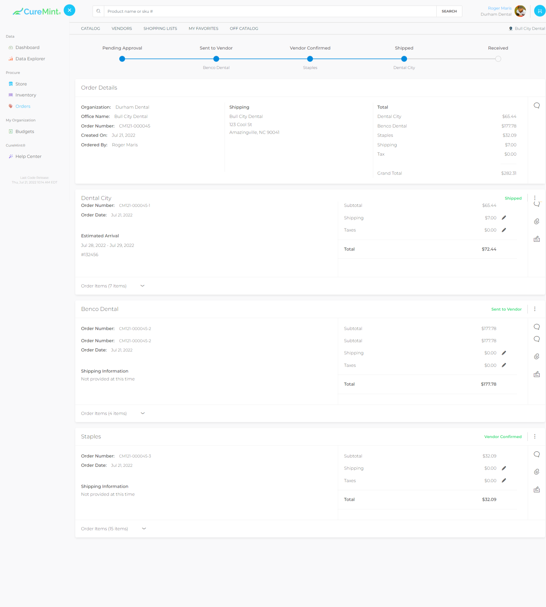 This will take you to the Order Details page, where your order will be broken down by vendor.