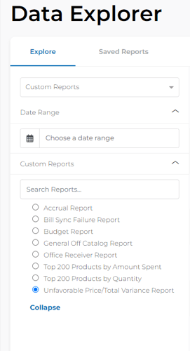 - Navigate the enabled custom reports for your organization and select the Unfavorable Item Variance Report