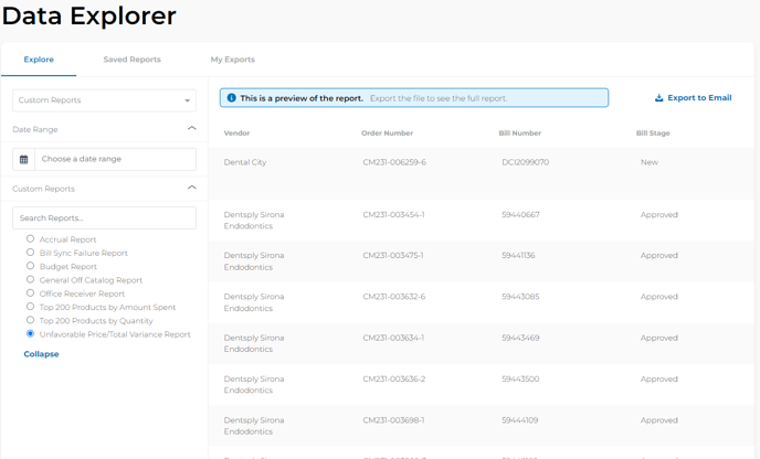 The Unfavorable Item Variance Report offers valuable insights into the financial differences between the Orders created in CureMint and the Bills received from Vendors. You always have the option to approve and pay bills with exceptions, knowing that the variance calculation will be available for you to dispute bills with vendors in more efficient and aggregated way. This data empowers you to approach vendors with a summary of any overcharges accumulated over a specific period, allowing you to dispute and potentially receive credit notes and refunds.