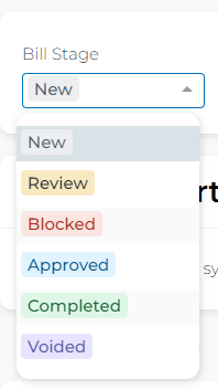 Please Note: The payment status of a bill is an independent status than that of a bill stage. Depending on your internal processes, there may be associations between the two.